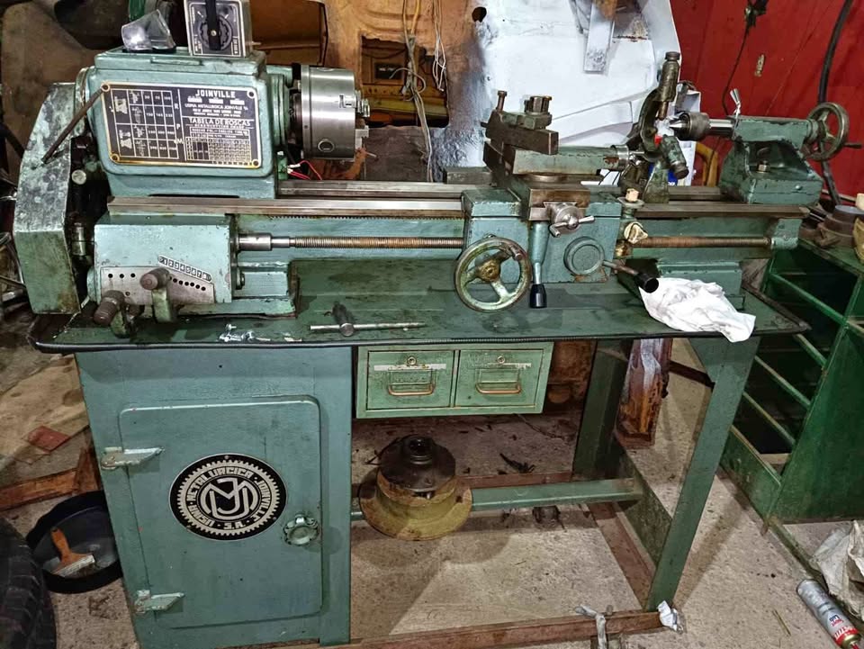 Torno de bancada Joinville com caixa Norton 2 placa uma 3 castanha e uma 4 castanha e lunetas muito novo de um dono só desde novo